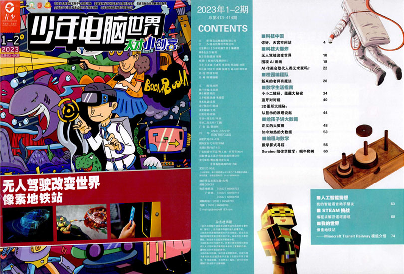 此外该杂志注重与教育机构和学校的合作,为青少年提供更多的学习资源和课程推荐。杂志团队会邀请一些优秀的教育机构和教师撰写专栏文章,分享最新的教育理念和实践,推动科技与教育的融合。杂志特色之一是注重培养创新精神和科技兴趣。《少年电脑世界》杂志鼓励孩子们思考和探索新的科技领域,通过科学实验、项目制作和编程等活动,培养他们的创意思维和动手能力。